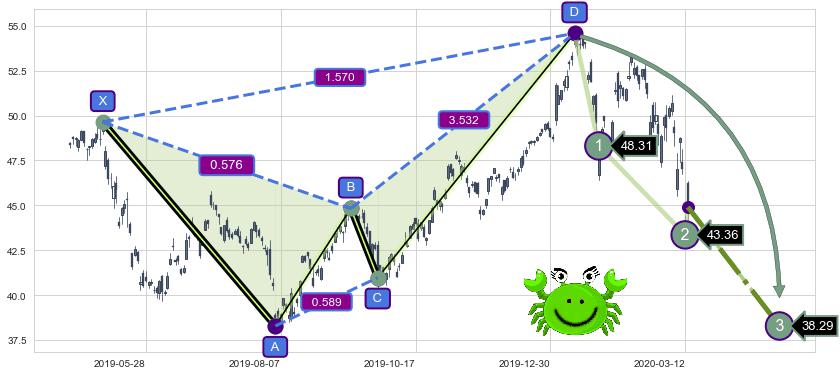 ➣ 已完成【蝴蝶】形态起点X: 2019-12-09, 终点D: 2020-03-12, 共65交易日