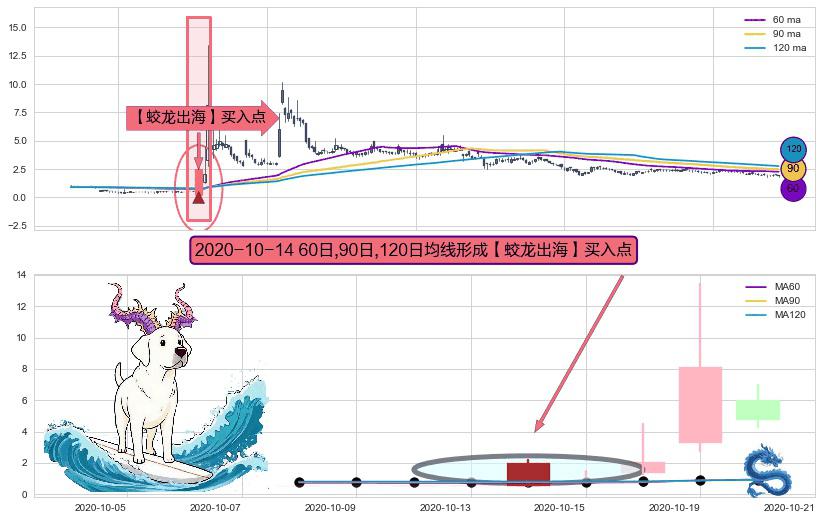 ⚀ 2020-10-14日显现 60日-90日-120日均线 【蛟龙出海】买入点 看多信号,后市看涨,买入