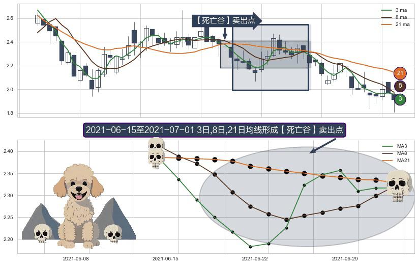 ⚀ 2021-06-16-日至2021-07-01-日显现 3日-8日-21日均线 【死亡谷】卖出点 看空信号,后市看跌,卖出