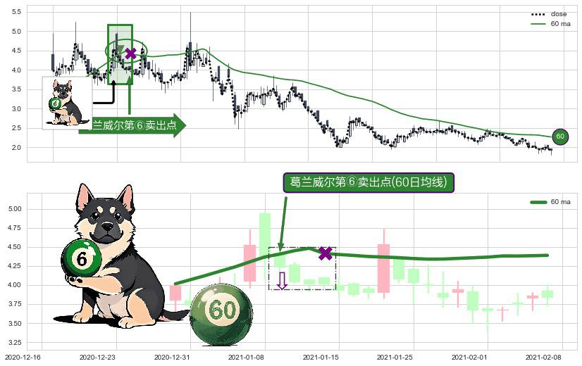 ⚀ 2021-01-11-日显现 葛兰威尔均线 60日均线 第⑥卖出点 走势反转见顶信号,后市看跌,卖出信号