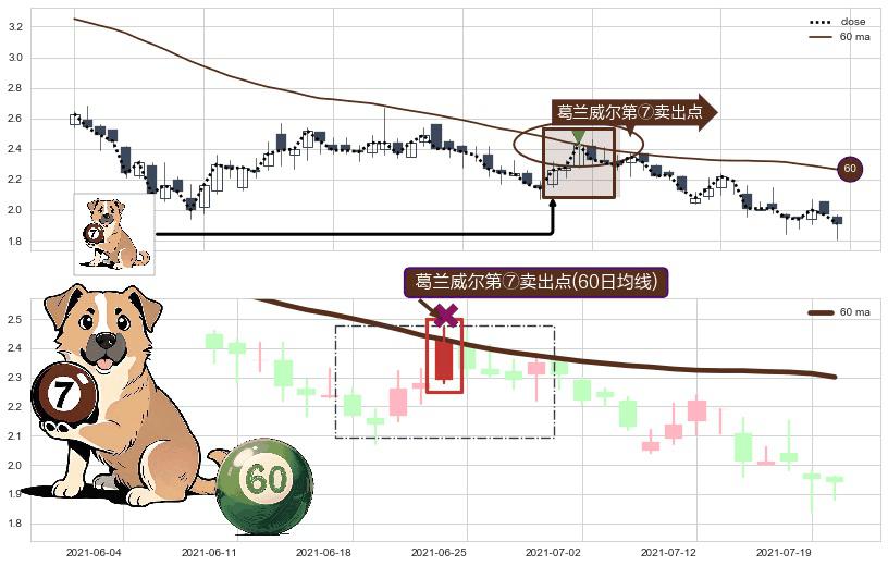 ⚀ 2021-06-24-日显现 葛兰威尔均线 60日均线 第⑦卖出点 下降趋势的中继信号,后市看跌,卖出信号