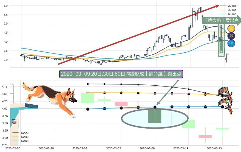 ⚀ 2020-03-09日显现 20日-30日-60日均线 【绝命跳】卖出点 看空信号,后市看跌,卖出