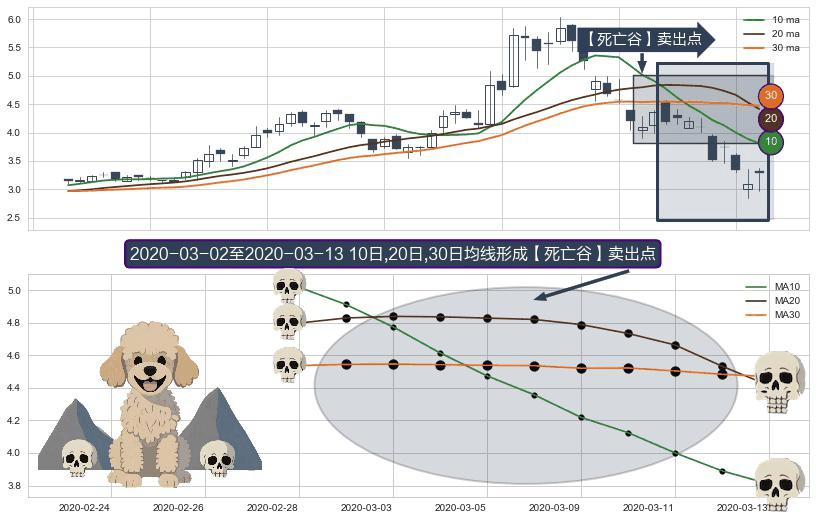⚀ 2020-03-03-日至2020-03-13-日显现 10日-20日-30日均线 【死亡谷】卖出点 看空信号,后市看跌,卖出