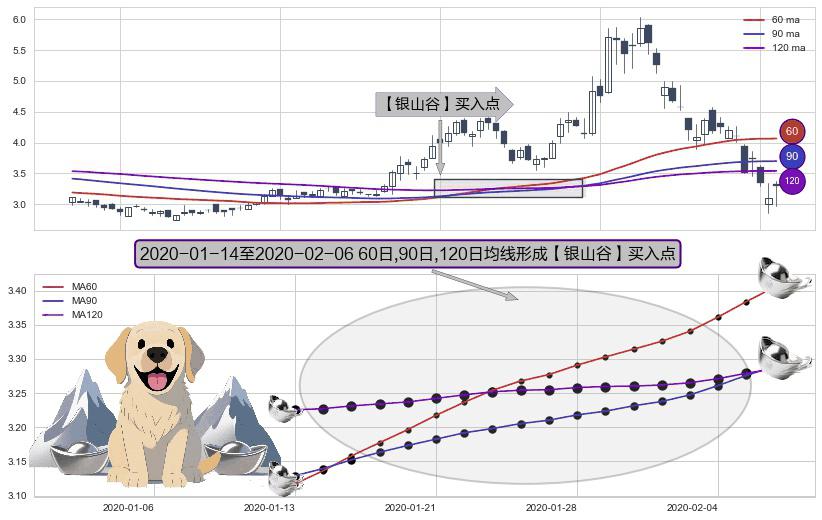 ⚀ 2020-01-15-日至2020-02-06-日显现 60日-90日-120日均线 【银山谷】买入点 看多信号,后市看涨,买入