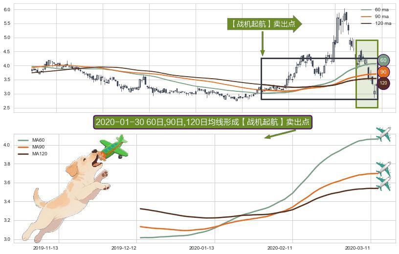⚀ 2019-12-13日-2020-03-13日显现 60日-90日-120日均线 【战机起航】卖出点 看空信号,后市看跌,卖出
