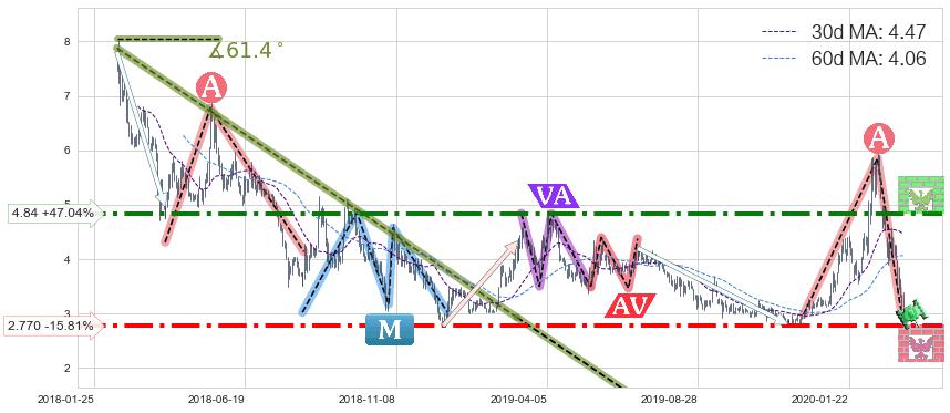 ♘ 阻力价格位4.84,可信任强度79.61%,距离最后交易2020-03-13形成的收盘价格3.290相差 +47.04%