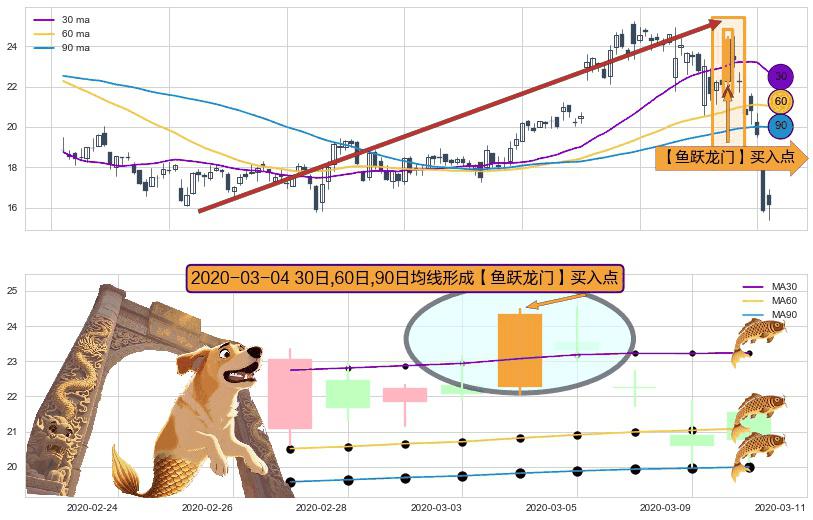 形态多维评估: ⚀ 2020-03-04日显现 30日-60日-90日均线 【鱼跃龙门】买入点 看多信号,后市看涨,买入