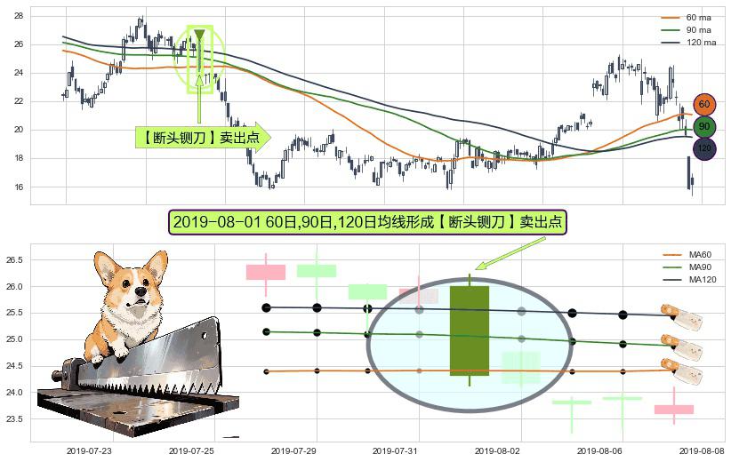 形态多维评估: ⚀ 2019-08-01日显现 60日-90日-120日均线 【断头铡刀】卖出点 看空信号,后市看跌,卖出