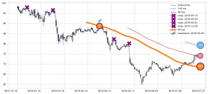 下跌趋势2015-12-16-2016-07-27,均线60确认关键阻力1处