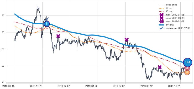 下跌趋势2018-09-13-2019-12-02,均线144确认关键阻力1处