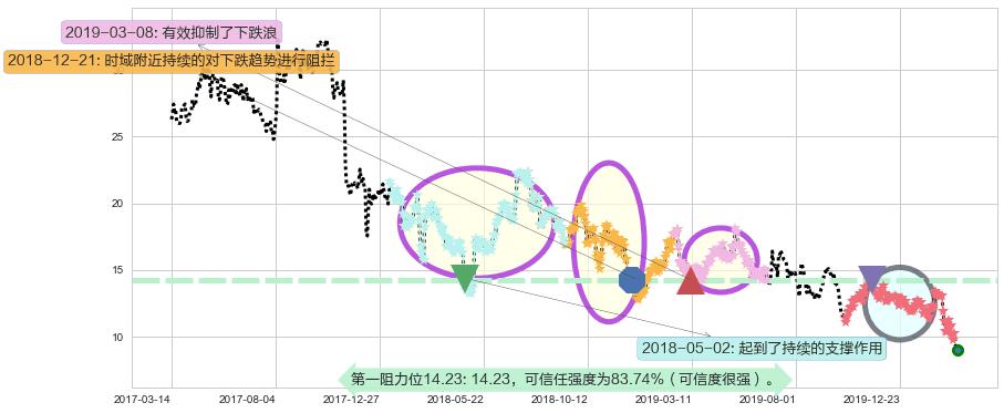 2018-12-21: 时域附近第一阻力位14.23持续的对下跌趋势进行阻拦,有效地放缓了下跌的速度。