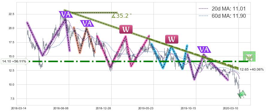 ♘ 阻力价格位14.10,可信任强度96.96%,距离最后交易2020-03-13形成的收盘价格9.03相差 +56.11%