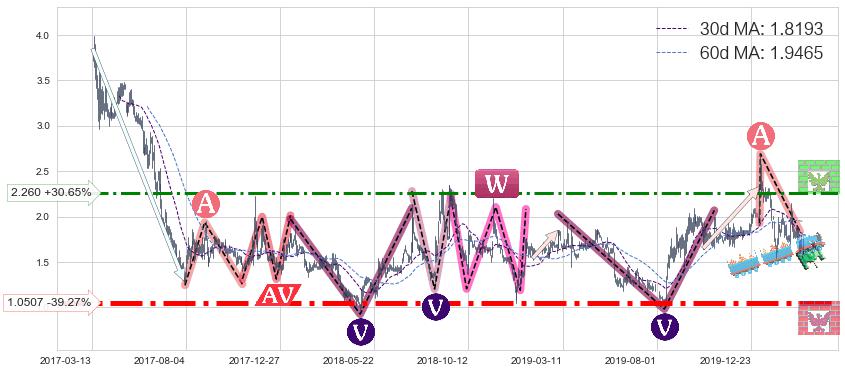 ♘ 阻力价格位2.260,可信任强度65.32%,距离最后交易2020-03-13形成的收盘价格1.7300相差 +30.65%