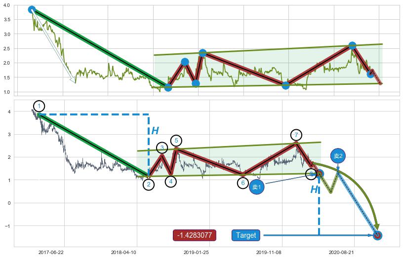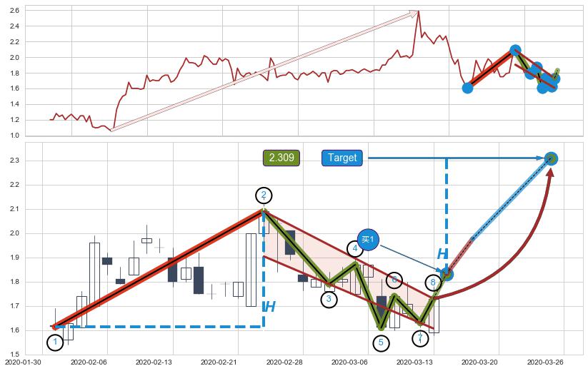 ➣ 最小中继整理跌幅→𝐇: 2.700 (𝐇旗杆的长度:旗杆起点→顶点)