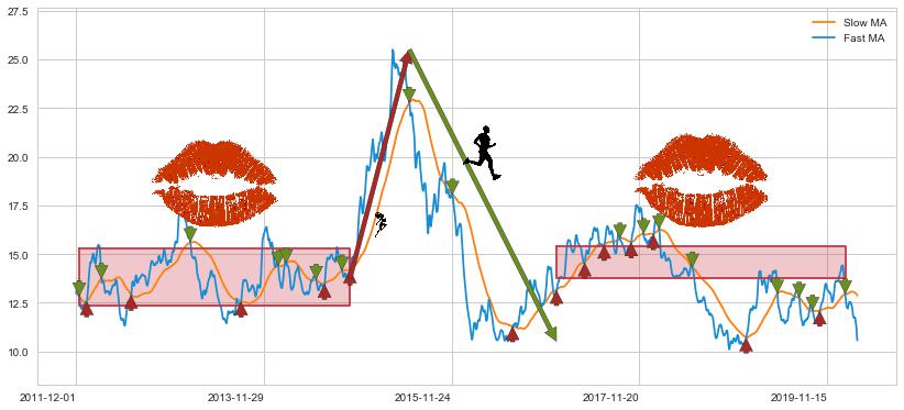 2011-12-13至2014-10-28 慢线与快线多次接触,存在上下穿越,有缠绕