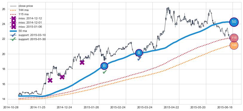 2014-10-28至2015-06-16 慢线与快线呈多头排列, 慢线与快线接触少,无缠绕