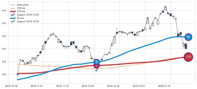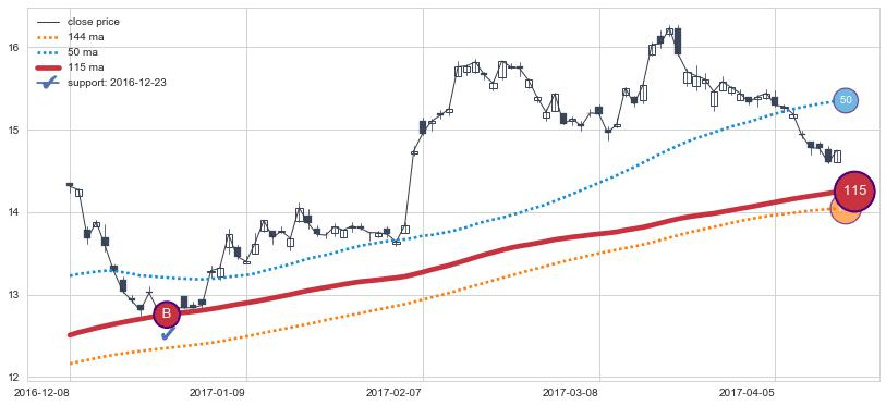 ⚀ 中期均线MA90上穿长期均线MA120形成的交叉是标准 黄金交叉