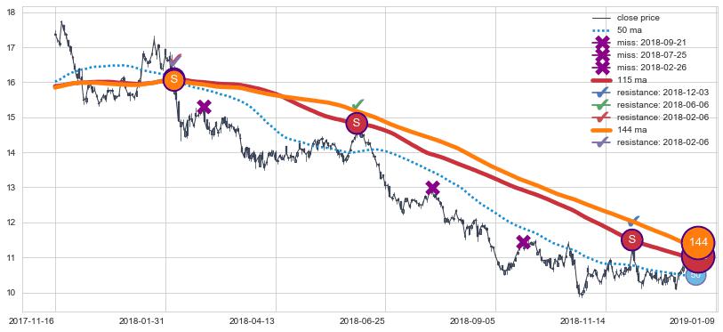 ⚁ MA3和MA8走势平行,且始终保持在短距离内,MA21始终在短中期均线上方,与短中期均线保持一定的距离,微微下行