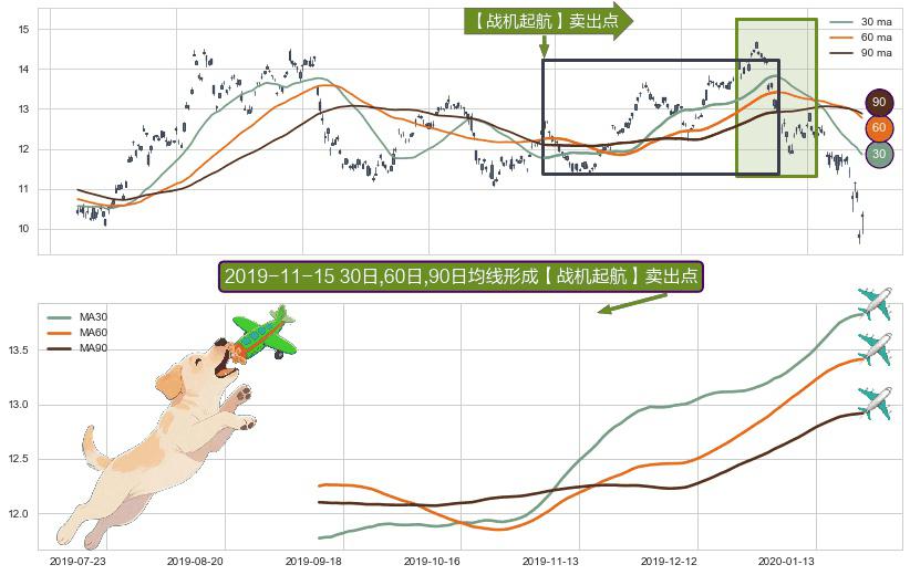 ⚀ 2019-09-12日-2020-01-24日显现 30日-60日-90日均线 【战机起航】卖出点 看空信号,后市看跌,卖出