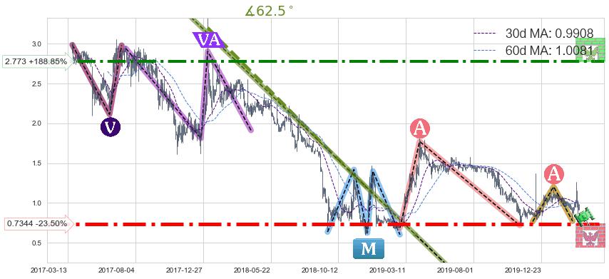 ♘ 阻力价格位2.773,可信任强度83.64%,距离最后交易2020-03-13形成的收盘价格0.9600相差 +188.85%