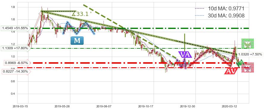 ➢ 预测:2020-03-25,【小幅反弹】稳定目前下跌趋势的前提下,预测价格:1.0082