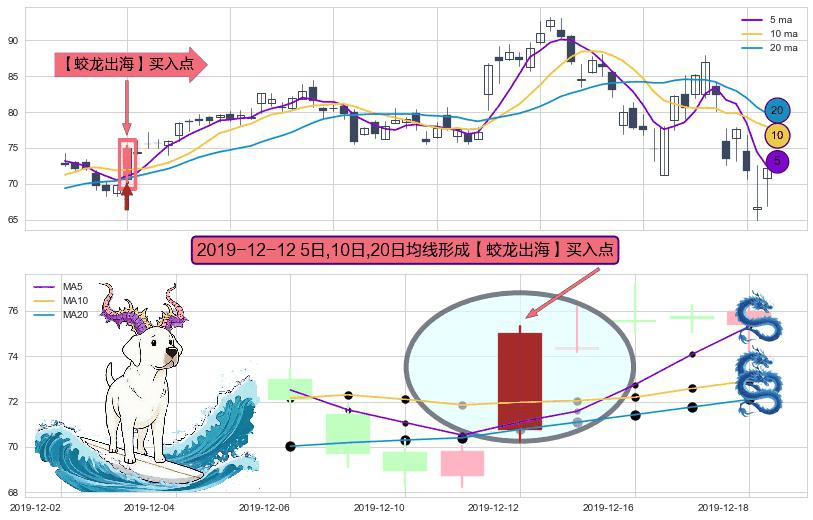 形态多维评估: ⚀ 2019-12-12日显现 5日-10日-20日均线 【蛟龙出海】买入点 看多信号,后市看涨,买入