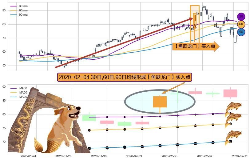 形态多维评估: ⚀ 2020-02-04日显现 30日-60日-90日均线 【鱼跃龙门】买入点 看多信号,后市看涨,买入