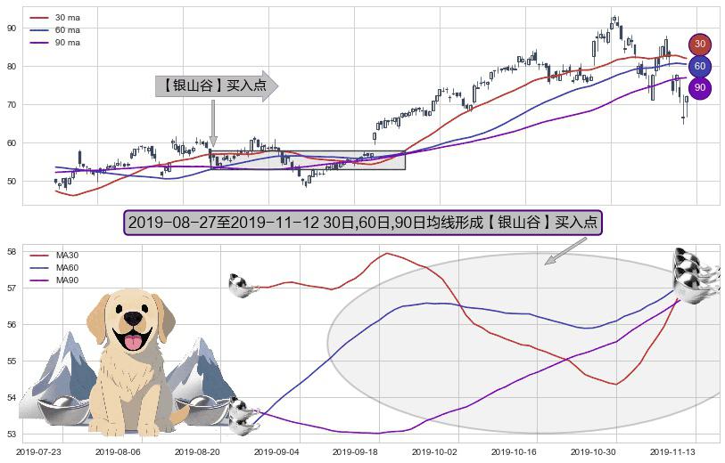 形态多维评估: ⚀ 2019-08-28-日至2019-11-12-日显现 30日-60日-90日均线 【银山谷】买入点 看多信号,后市看涨,买入
