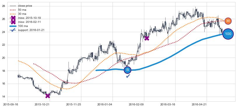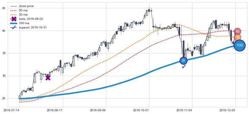 上涨趋势2016-07-14-2016-12-05,均线100确认关键支撑1处