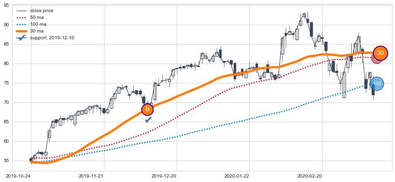 上涨趋势2019-10-24-2020-03-11,均线30确认关键支撑1处