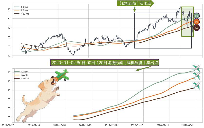 形态多维评估: ⚀ 2019-10-24日-2020-03-10日显现 60日-90日-120日均线 【战机起航】卖出点 看空信号,后市看跌,卖出