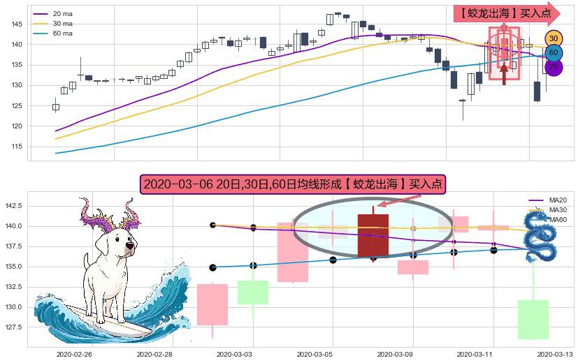 形态多维评估: ⚀ 2020-03-06日显现 20日-30日-60日均线 【蛟龙出海】买入点 看多信号,后市看涨,买入