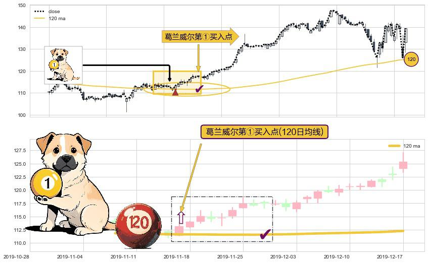 形态多维评估: ⚀ 2019-11-15-日显现 葛兰威尔均线 120日均线 第买①入点 走势反转见底信号,后市看涨,买进信号