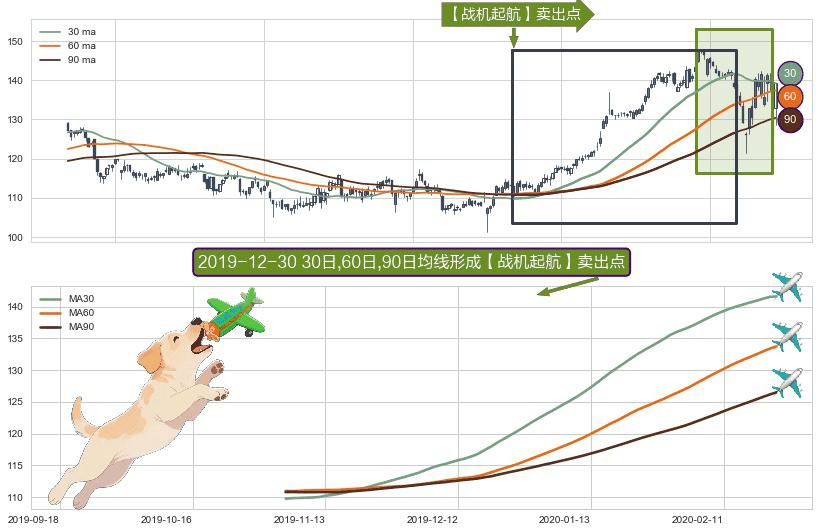 形态多维评估: ⚀ 2019-11-05日-2020-02-24日显现 30日-60日-90日均线 【战机起航】卖出点 看空信号,后市看跌,卖出