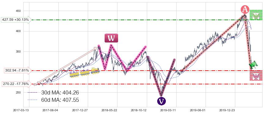 ♘ 支撑价格位302.94,可信任强度53.67%,距离最后交易2020-03-13形成的收盘价格328.59相差 -7.81%