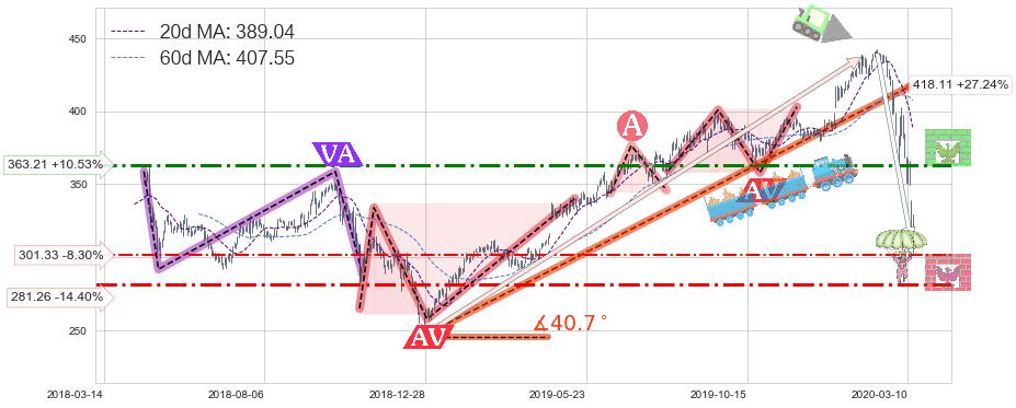 ♘ 阻力价格位363.21,可信任强度64.53%,距离最后交易2020-03-13形成的收盘价格328.59相差 +10.53%