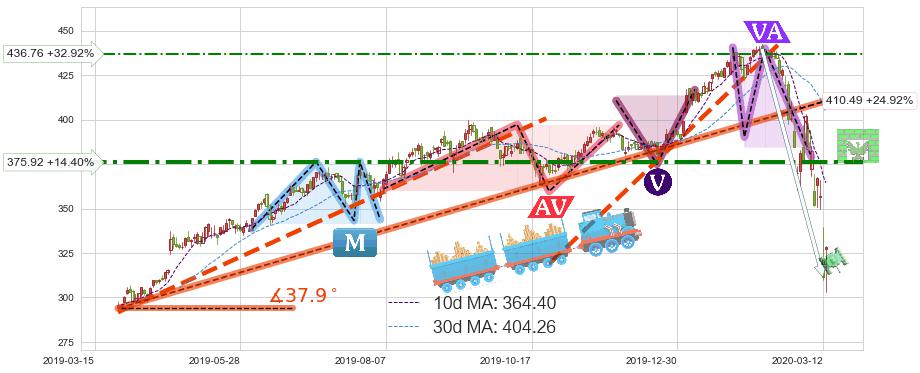 ♘ 阻力价格位375.92,可信任强度73.41%,距离最后交易2020-03-13形成的收盘价格328.59相差 +14.40%