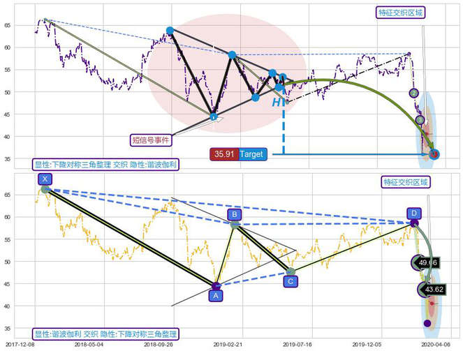 ➢ 下降对称三角整理属【短级别信号事件】谐波伽利属【长级别信号事件】长短周期组合信号事件, 短长事件长度比31.52%