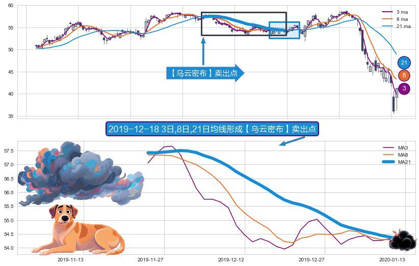 形态多维评估: ⚀ 2019-11-25日-2020-01-10日显现 3日-8日-21日均线 【乌云密布】卖出点 看空信号,后市看跌,卖出
