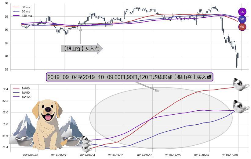 形态多维评估: ⚀ 2019-09-05-日至2019-10-09-日显现 60日-90日-120日均线 【银山谷】买入点 看多信号,后市看涨,买入