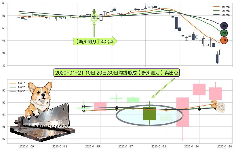 形态多维评估: ⚀ 2020-01-21日显现 10日-20日-30日均线 【断头铡刀】卖出点 看空信号,后市看跌,卖出
