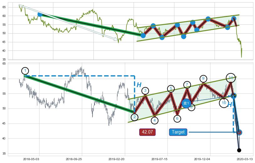 ➢ 2020-03-09到达第❸价格目标位置43.62