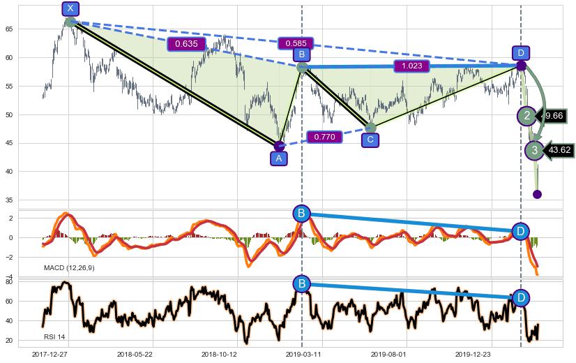 ➢ 谐波价格D点比B点高 ⤴,【MACD】指标D点比B点低 ⤵️