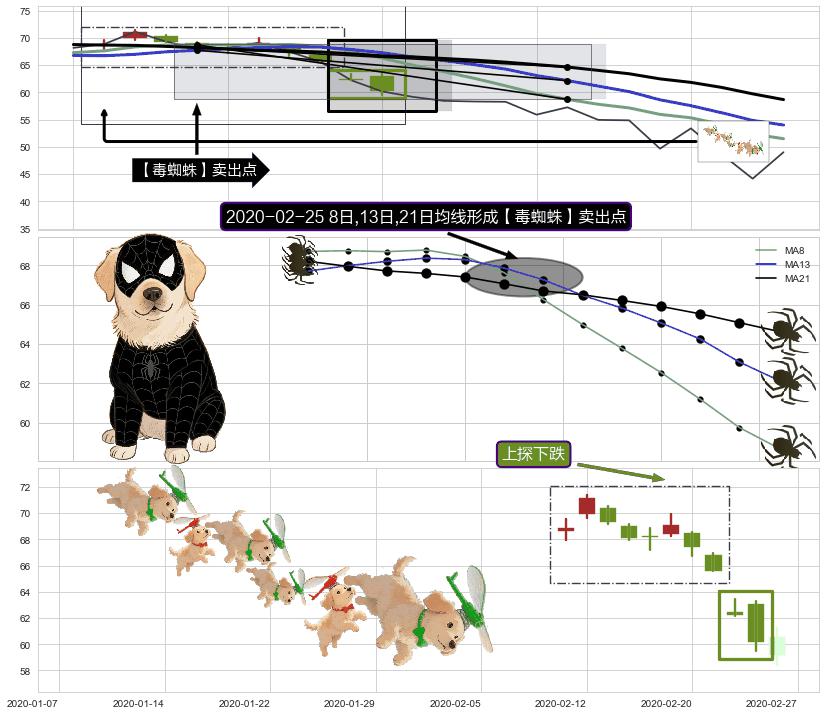 | 2 🅚:看跌(高位倒锤头)流星线 ➕ 🎢:【毒蜘蛛】卖出点均线组合卖出点信号形成后,猜想三条均线周期内的交易者都看空后市,持续下跌 ☞ 看空信号 ⇥ 【均线】交织【🅚线】⇥ 综合量化分数: 49 | > |