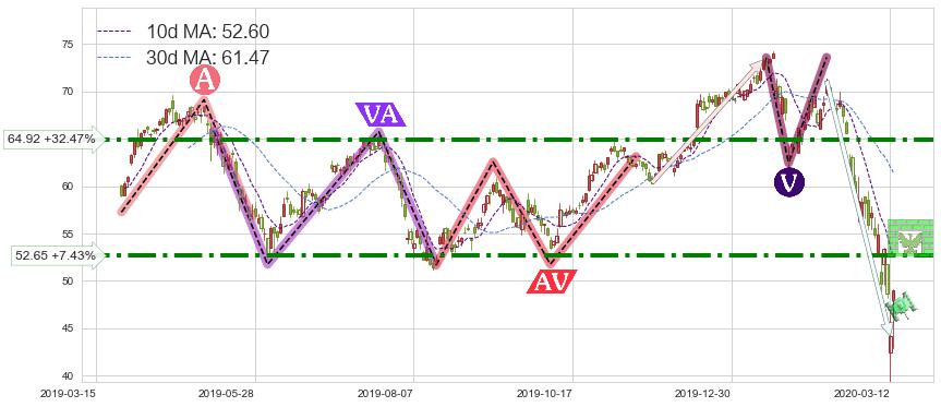 ➢ AI预测: 假定反转如期而至,第❶价格目标位置(2020-04-08, 55.58)