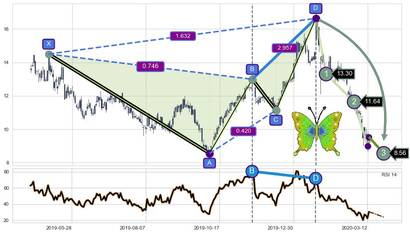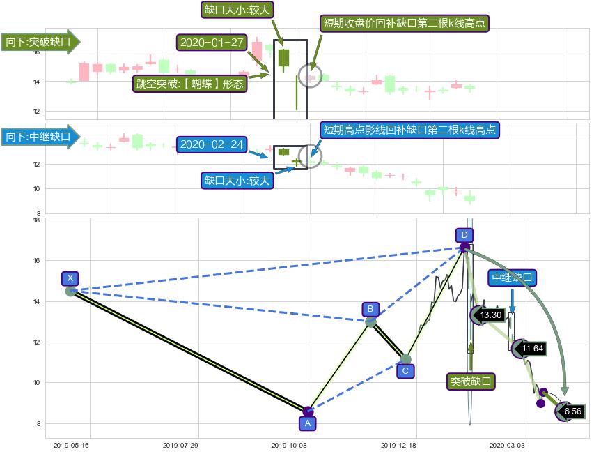 ➣ 已完成【蝴蝶】形态起点X: 2019-05-03, 终点D: 2020-01-22, 共182交易日