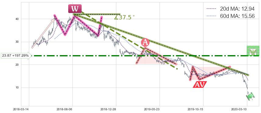 ♘ 阻力价格位23.87,可信任强度81.62%,距离最后交易2020-03-13形成的收盘价格8.03相差 +197.29%