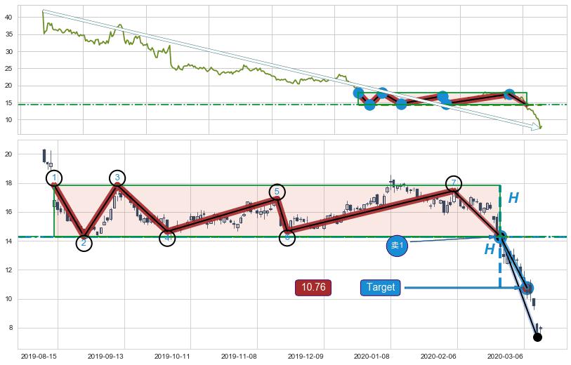 ➢ 【多方力量耗尽】已在2020-02-26突破矩形提供的【支撑】颈线 14.30 →箱形震荡盘整结束