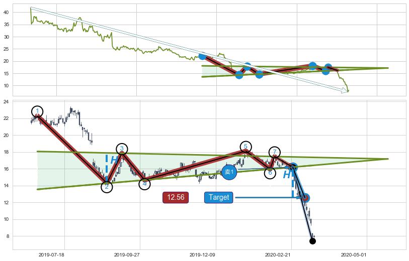 ➣ 【已确认突破】下降【对称】三角形整理 起点:2019-06-21,突破点:2020-02-24,形态共170交易日