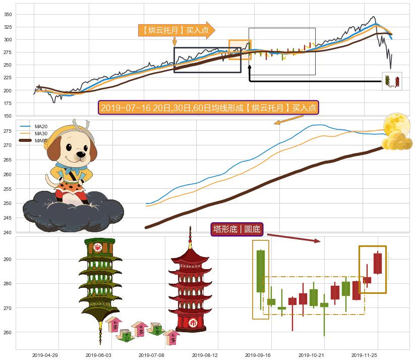 ➢ 低点影线(2020-02-05: 324.17 )→回踩→第二根k线低点(2020-02-04: 326.29 )